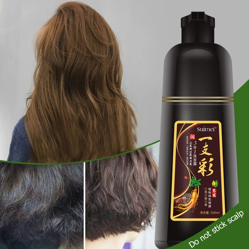 Купить 500 мл натуральный Органический Женьшень окрашивающий шампунь делают волосы мягкими блестящий коричневый фиолетовый и черный сухой продукт... Цена Дешево
